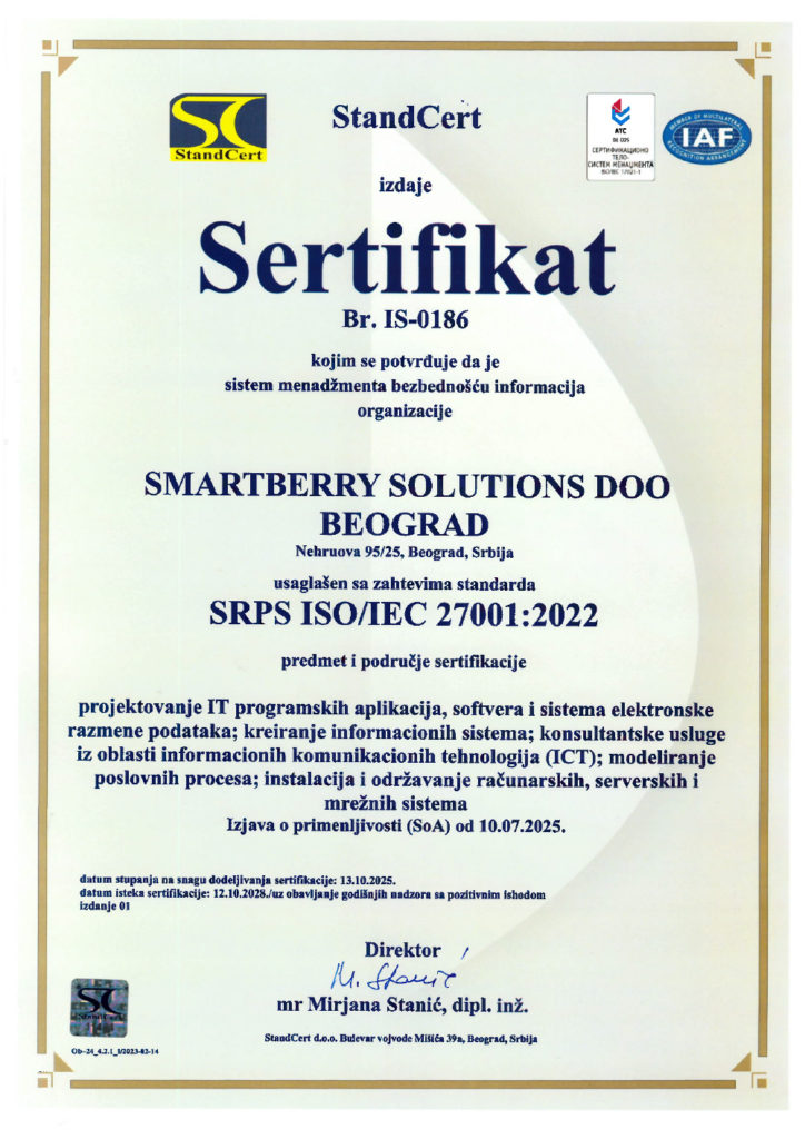 Посебно је важно истаћи да готово сва ИКТ решења која SmartBerry имплементира за потребе јавне управе директно доприносе унапређењу спровођења прописа, дигиталној трансформацији институција, аутоматизацији административних и пословних процедура, као и модернизацији система и олакшавању трговине.